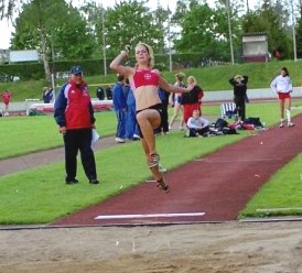 5,78m standen für Anke Wegener zu Buche (oben Mitte). Von den Leverkusener Mädchen sprang Svenja Kleinschmidt, die jüngste, mit 5,57m am weitesten, gefolgt von Doris Quack mit 5,51m (rechts oben und Mitte). Maike Wilden erzielte mit 5,35 persönl. Bestleistung, Sarah Granich kam auf 5,28m und Natascha Rother auf 5,17m (unten links und rechts). Allerdings werden alle Sprünge keinen Eingang in die Bestenlisten wegen zuviel Wind finden.